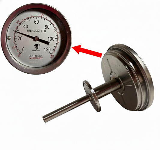 50.5mm Tri-Clamp Thermometer | 304 Stainless Steel | 70mm Probe
