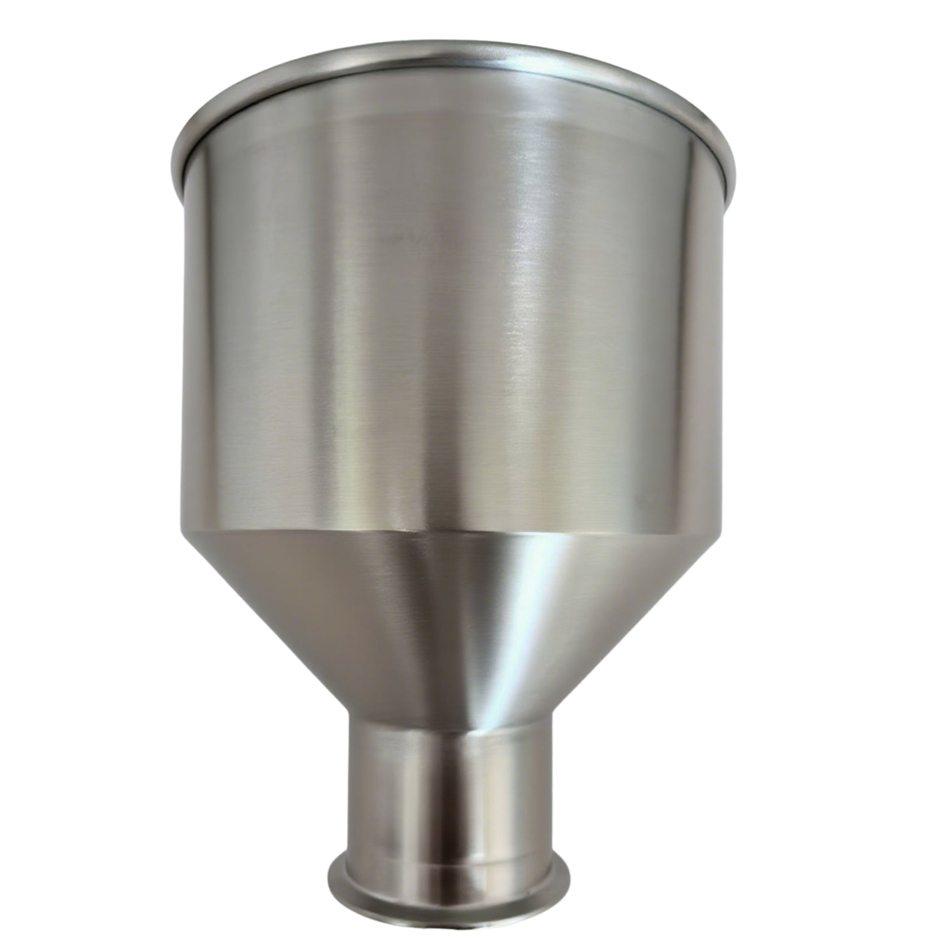 15L Hop Funnel - 13L Working Volume - 4" Bottom Outlet with Tri-Clamp (119mm OD) - 2mm Thickness - Mirror Polish Inside & Outside