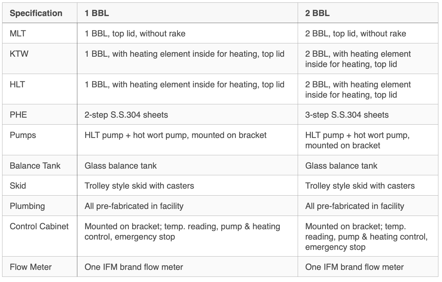 Yes. Each system includes dedicated HLT and hot wort pumps, as well as a plate heat exchanger (PHE) sized appropriately for the 1 BBL or 2 BBL configuration.