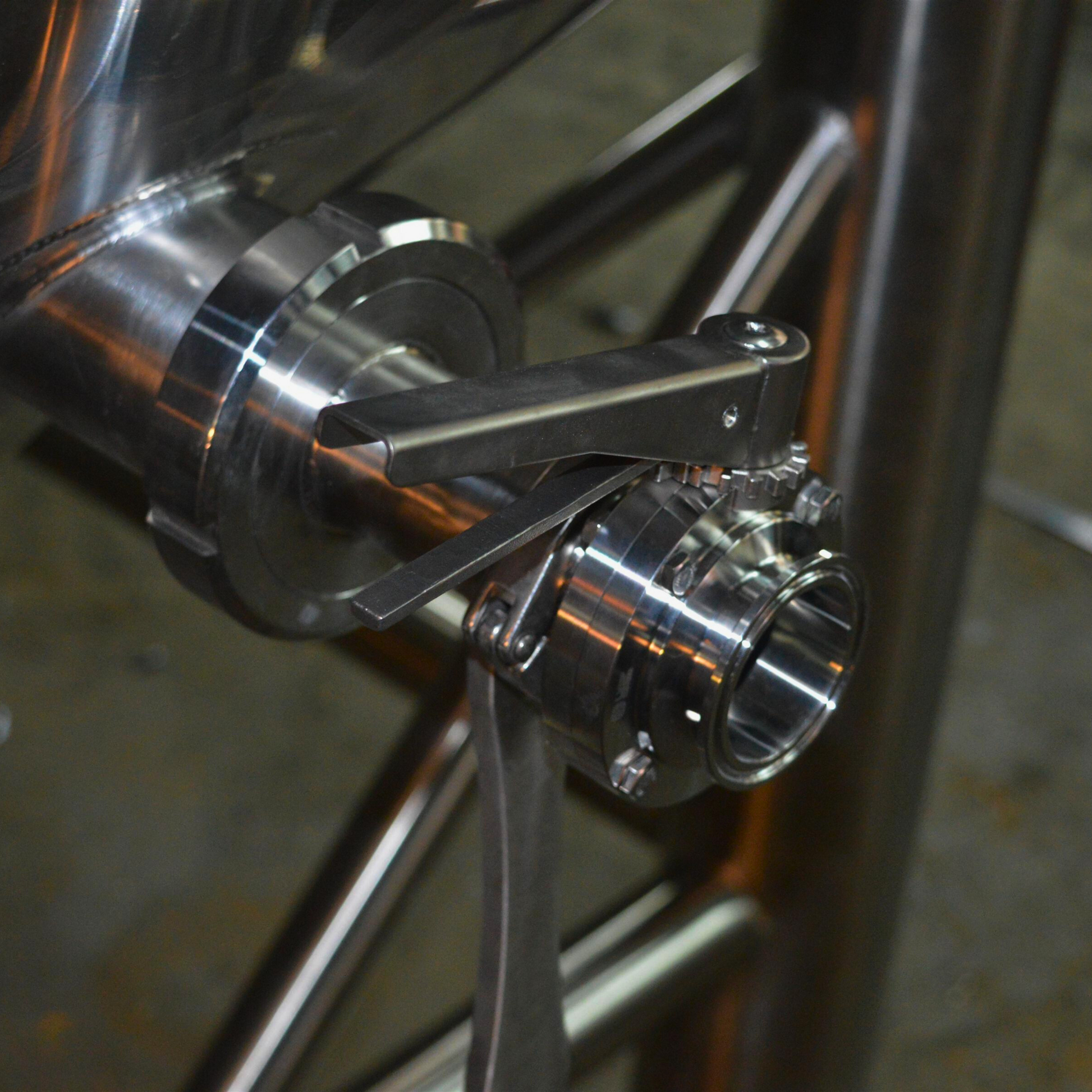 • Comprehensive Valve Integration: Outfitted with three 1.5” Tri-Clamp butterfly valves and a DIN65 port for the racking arm, providing versatile and reliable flow management.